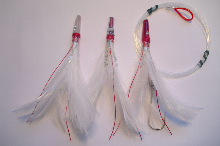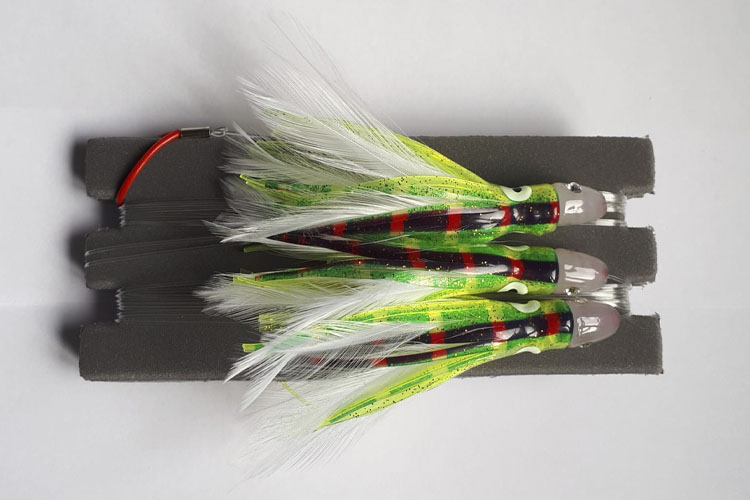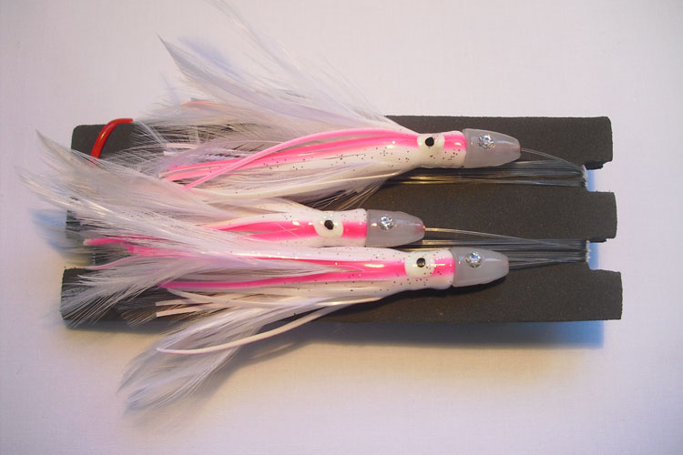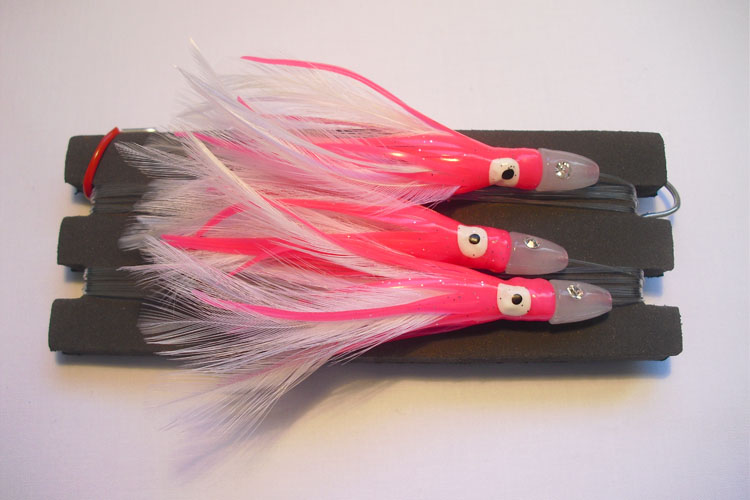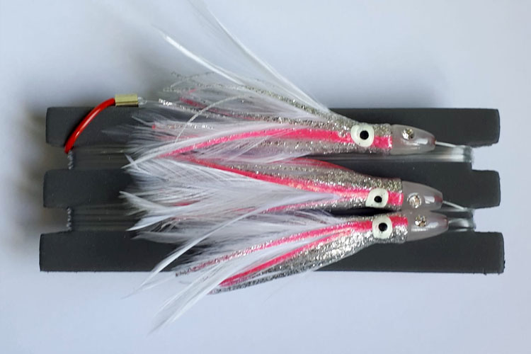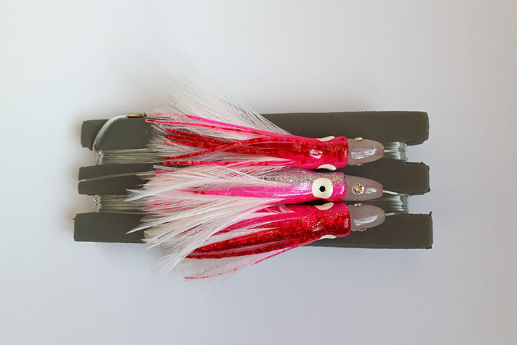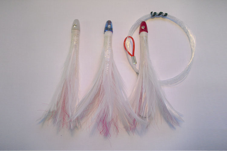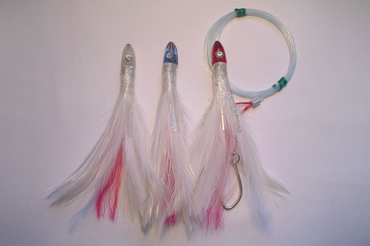 Todos los señuelos están montados con tres brazas de hilo de 0,70mm de diámetro, excepto los modelos 5001B, 5001A, 6001B, 6001A, 6001R, 6002L, 6002R y 6003R (con tres brazas de hilo de 0,80mm de diámetro), y en el anzuelo montado con una anilla de acero inox. Acabado en tres vueltas (para dar opción a cambiar el modelo de anzuelo)