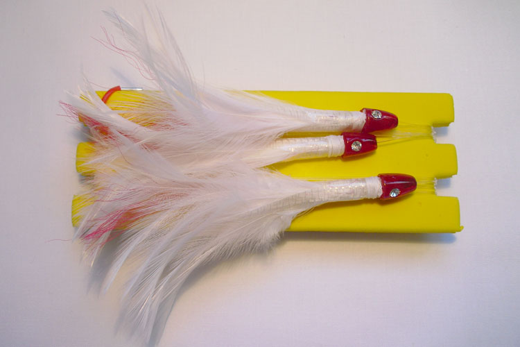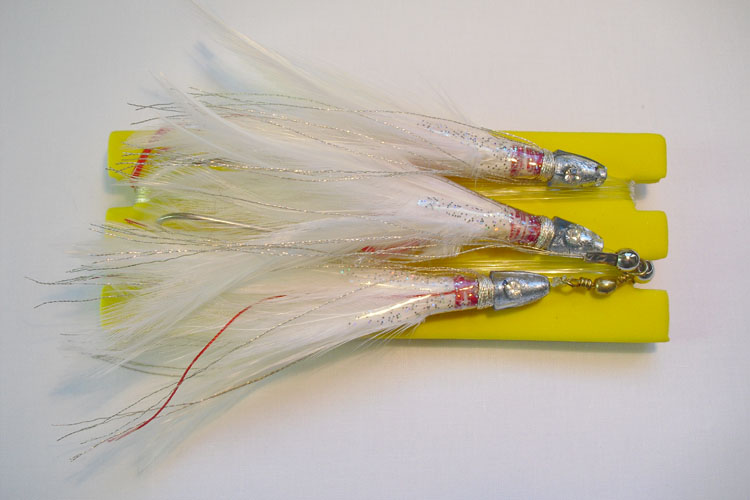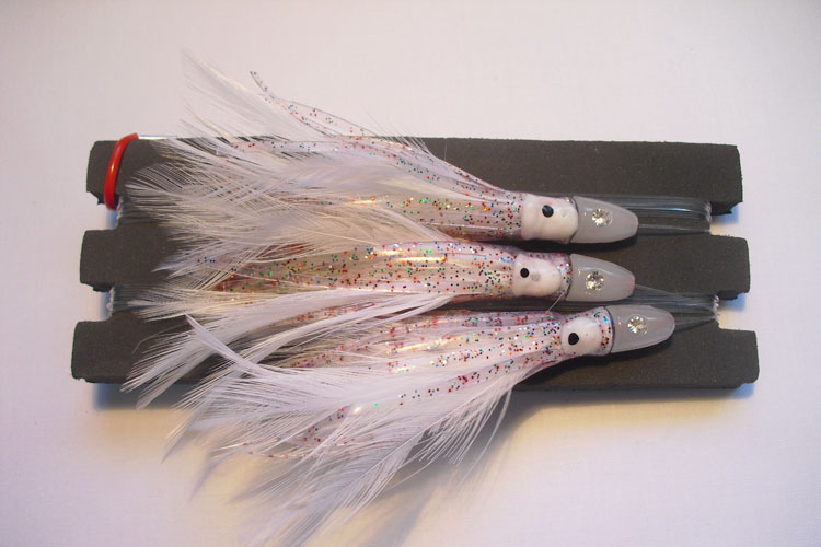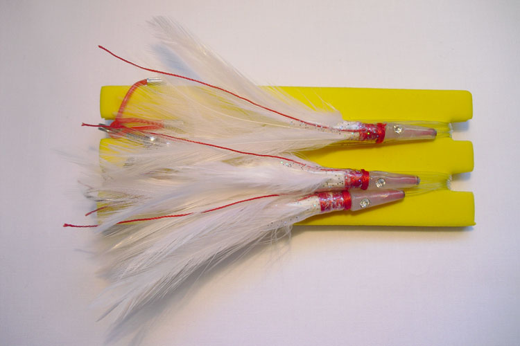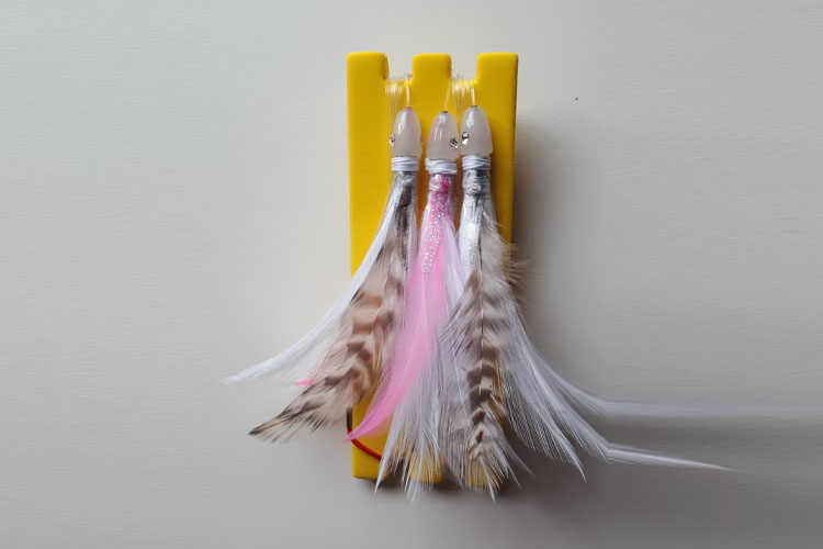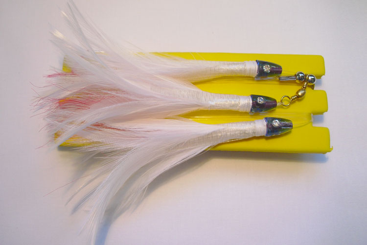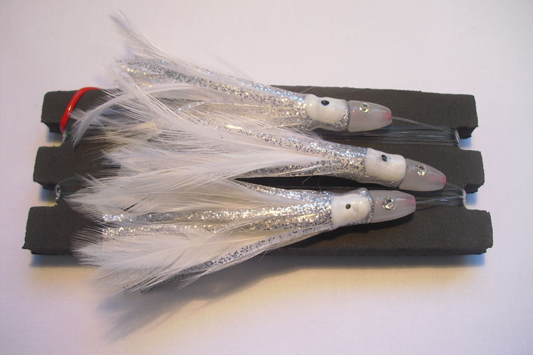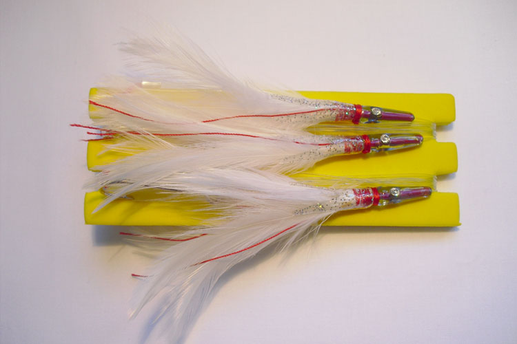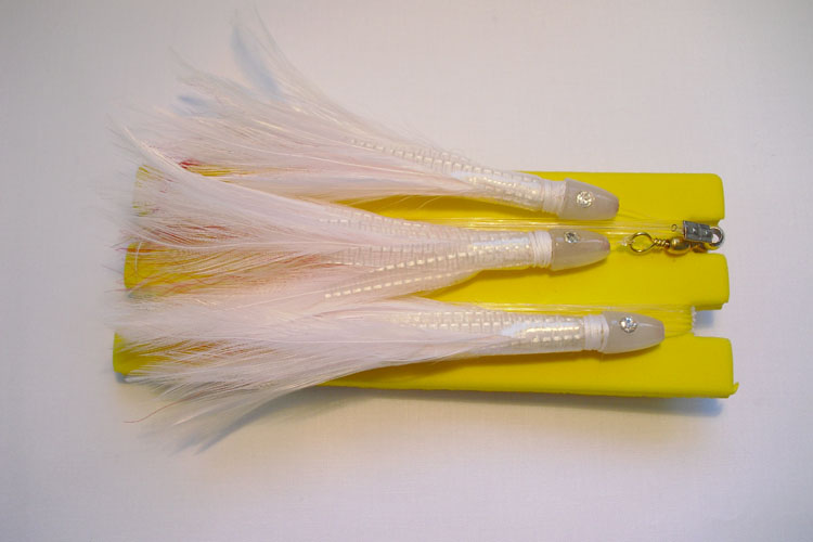 Todos los señuelos están montados con tres brazas de hilo de 0,70mm de diámetro, excepto los modelos 5001B, 5001A, 6001B, 6001A, 6001R, 6002L, 6002R y 6003R (con tres brazas de hilo de 0,80mm de diámetro), y en el anzuelo montado con una anilla de acero inox. Acabado en tres vueltas (para dar opción a cambiar el modelo de anzuelo)